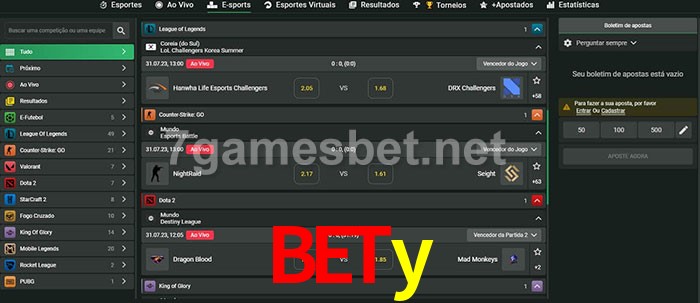 O bety oferece uma grande seleção de opções de apostas em e-sports com probabilidades competitivas